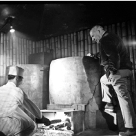 Vic oversees a Chinese oven used to cook his Indonesian lamb roast and barbecued spareribs