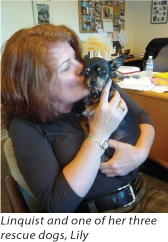 When asked how the economy and budget constraints affect how they care for the animals, Lindquist shakes her head. “When the economy tanked, we said, ‘Now’s the time to hunker down, stick to the plan, stay on top of expenses, and move forward.’” She says she is thankful for her intrepid staff and board, and for the donors who support the shelter and its programs. “We are 100 percent donor-supported, and we take that very seriously. We have a lean staff but we get things done.”