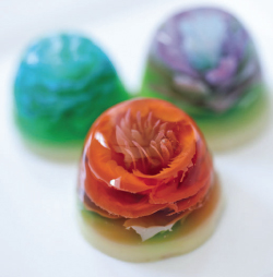 But I did save room for dessert. After the chocolate cupcakes on a stick, the shortbread cookies and a tiny dulce de leche crepe, I selected a Jell-O shot – just to cap off the evening. Rosa Rodriguez, a talented artist from Mexico, creates this edible art in transparent molds. Organic gelatin, flower blossoms and in the case of the one I had, 100-proof vodka. It looks like a small glass paperweight. But, it tastes like a wobbly, slightly sweet cocktail.