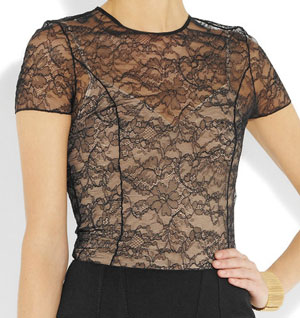 This is a wonderful fabric for the warm Indian summer weather. Lace is showing up in handbags, tops, skirts, and dresses – you name it. The important thing is lace isn’t dressy anymore; it’s for daytime. Select a white, black or cream lace t-shirt and pair with any skirt or pants and like magic you have a current fall 2011 outfit. One piece of lace is enough for each outfit.