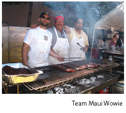 The runners up weren’t exactly slouches. Desperado’s BBQ & Rib Co. of Hinckley, Ohio, pulled down second place. Owner Lee Rice, who’s been competing for 13 years, says his secret is the investment of time and effort – listen to him and you’ll learn that there are no shortcuts to winning ribs. Maui Wowie BBQ Co. (from Reno, not Hawaii) took home third place. Mike Collins and his Maui Wowie crew use a dry rub on the ribs and pineapple juice in the sauce to create their own special brand of excitement.