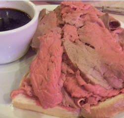 I remember going to Lefty’s with my dad when I was too little to push my plastic tray along the railing. Back then you had just one choice of doneness for the roast beef – shoe leather. The quality of the food has come a long way since owner Nick Bovis took over. Lefty’s is now the only Hofbrau I know where you can order roast beef medium rare and the experienced carvers don’t laugh in your face. And the prices can’t be beat: under $7 for a gut-busting pile of roast beef, glazed ham, corned beef, pastrami, or turkey on a freshly baked sourdough roll dipped in au jus, and under $8 for my favorite, the open-faced medium-rare roast beef sandwich with mashed potatoes over slices of white bread drenched in gravy with a pile of those famous dill pickles. (And don’t forget the creamy horseradish!)