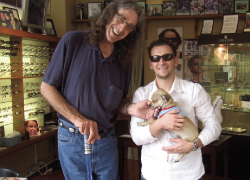 Peter Mayhew (left), who played Chewbacca the Wookie in the Star Wars' films, stopped in at San Francisco Optics on Chestnut Street for new glasses from owner Alex Feldman.
