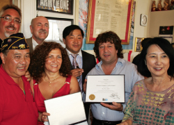Extending a San Francisco welcome during Fleet Week in October was the American Legion Cathay Post 384, which along with Colosseo Ristorante and Bar Italiano provided food for the troops while BART donated free passes. From left (back): Stefano Cassolato of Garland Public & Community Relations, Superior Court judge Richard Ulmer Jr., BART board president James Fang. From left (front): American Legion Cathay Post 384 commander Ron Lee, Filomena Florese of Colosseo, Maurizio Florese of Colosseo, and Superior Court judge Lillian Sing.