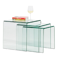 Consider incorporating glass pieces of furniture instead of bulky wood elements. Glass end tables and coffee tables will make your living space feel far more open.